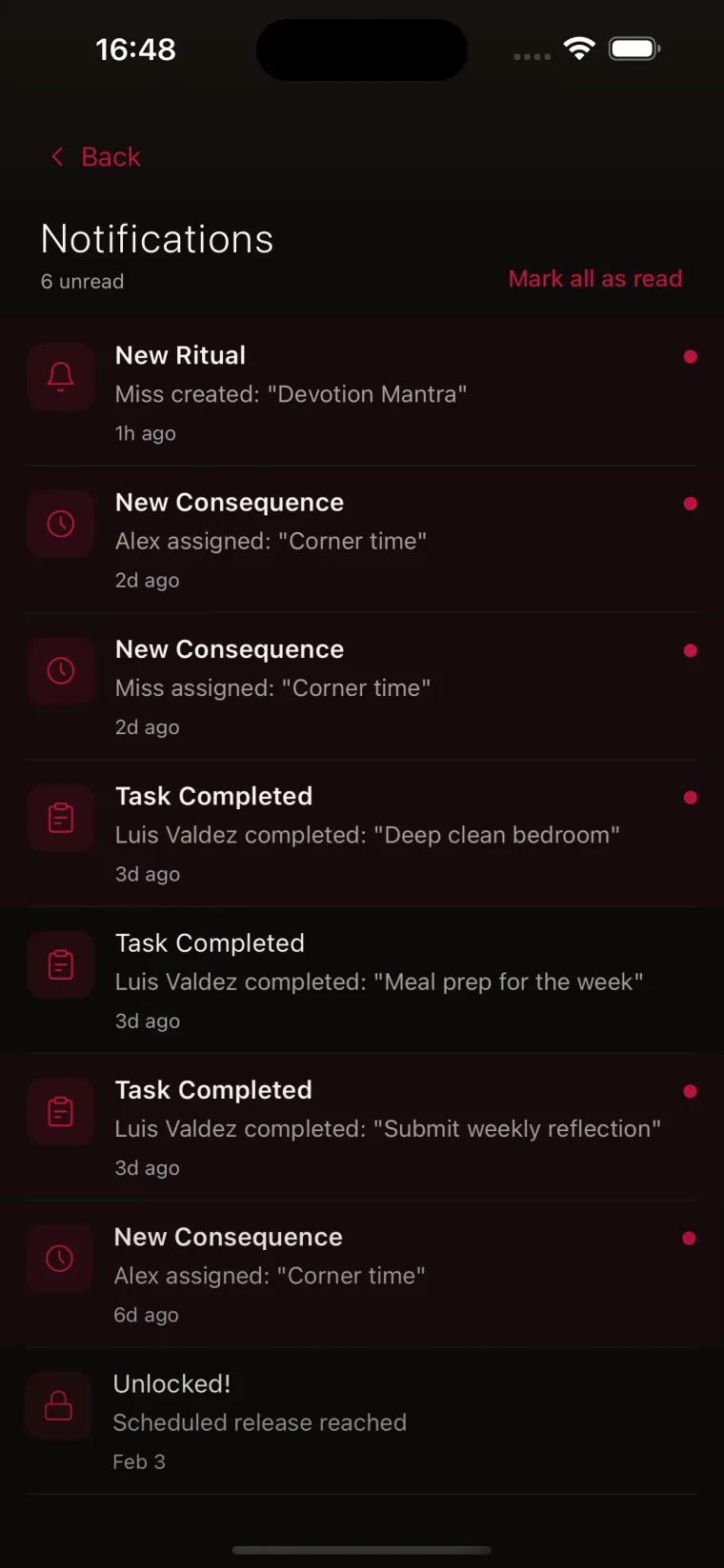 ProManage multiple D/s relationships with separate dashboards, independent settings, and seamless one-tap switching between dynamics.